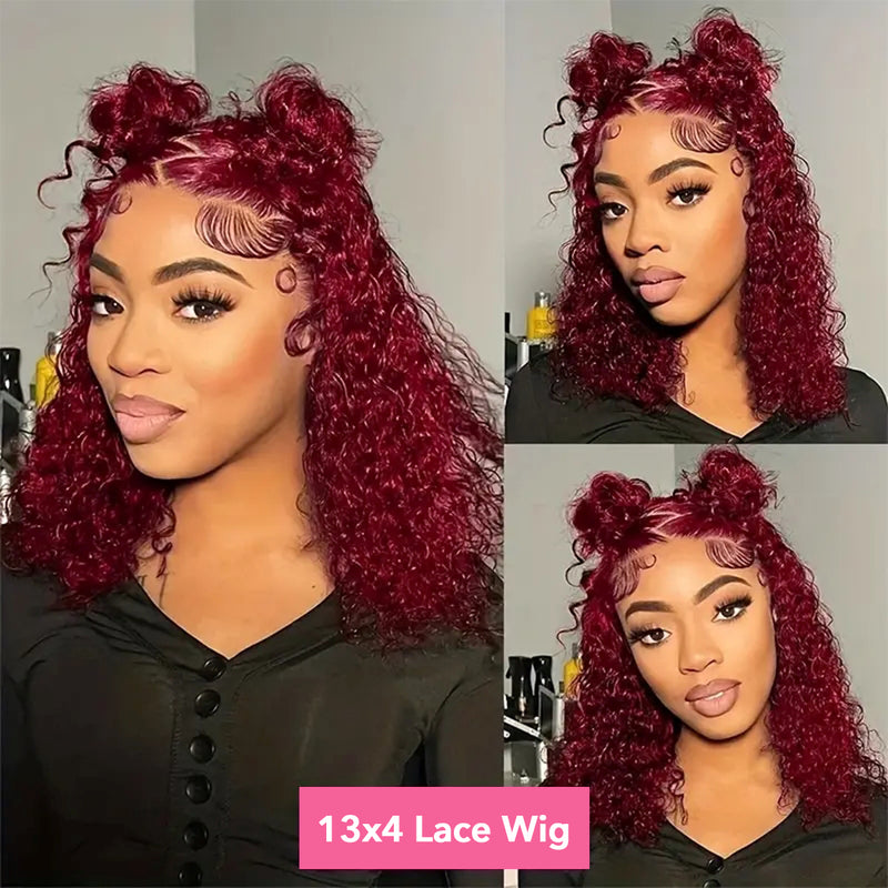 Encharm 13X4 Transparent Lace 99J Burgundy Color Deep Wave Bob Wig 180% Density Human Hair