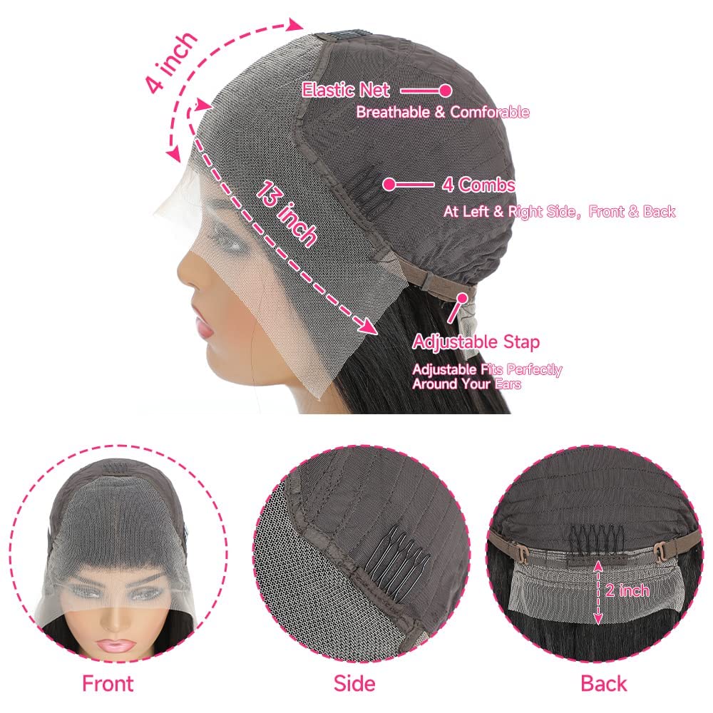 Encharm 13X4 Transparent Lace Natural Color Straight Wig 180% Density Human Hair