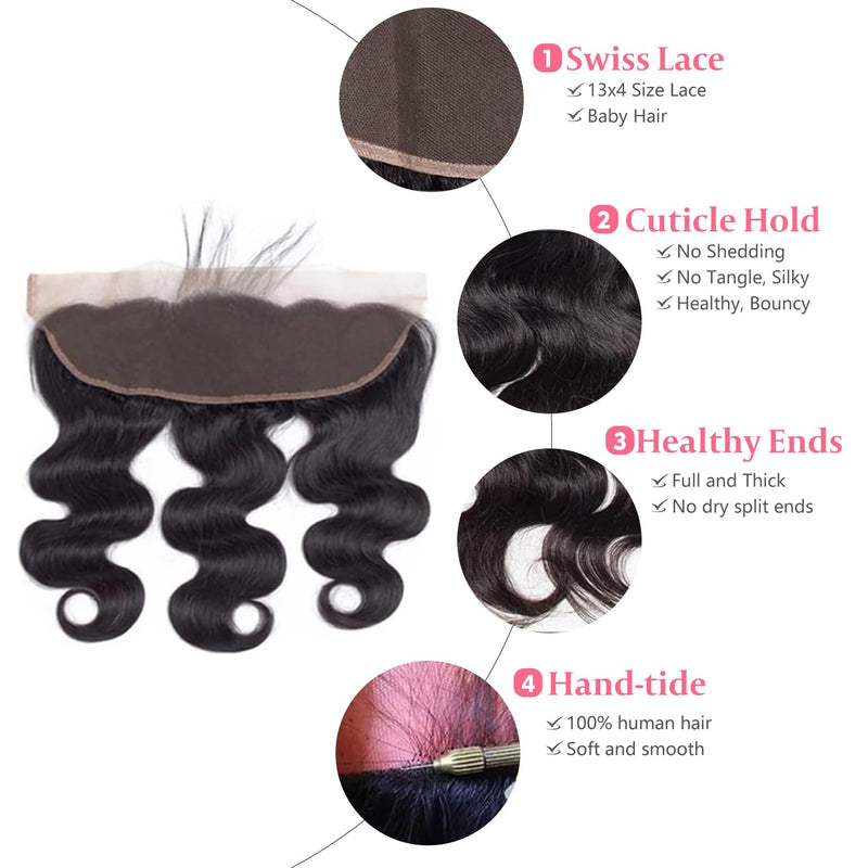Encharm 13X4 HD Lace Frontal With Baby Hair Free Part 100% Virgin Human Hair Body Wave