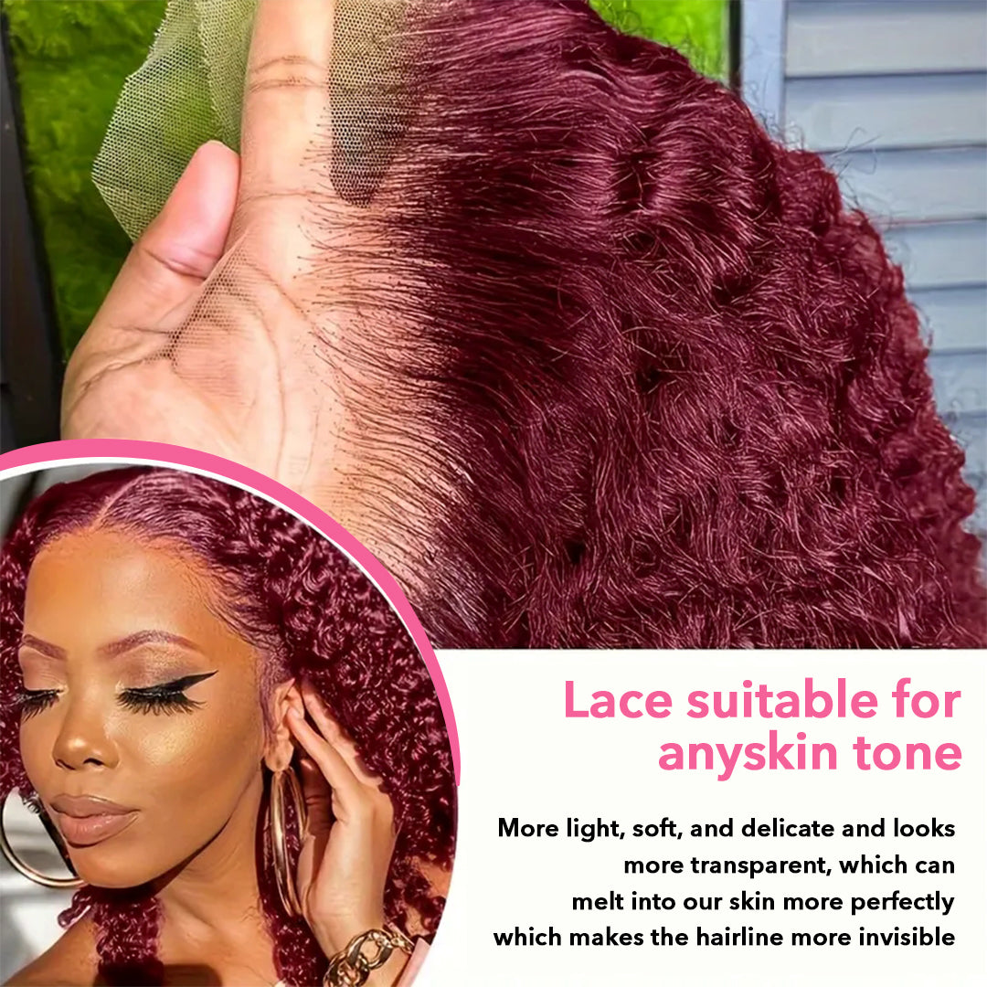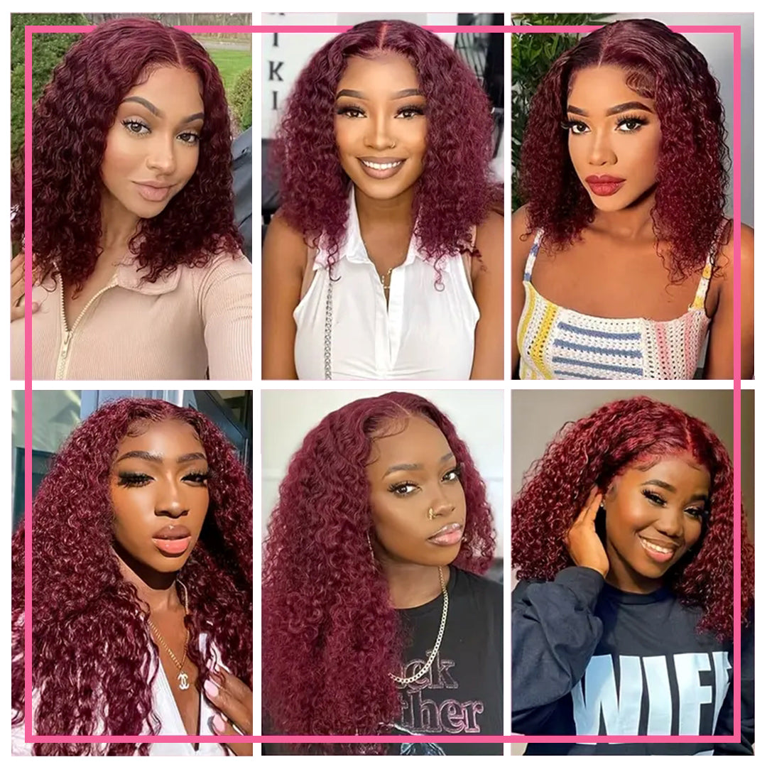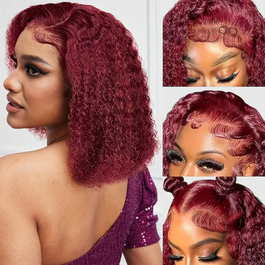 Encharm 13X4 Transparent Lace 99J Burgundy Color Deep Wave Bob Wig 180% Density Human Hair