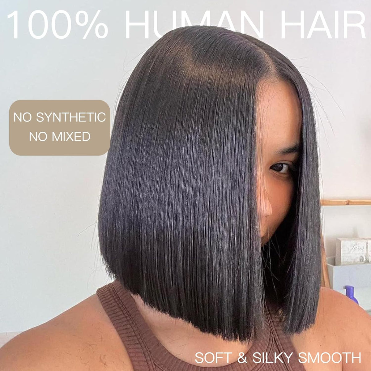 Encharm 4x4 Transparent Lace Straight Bob Wig Natural Black Closure Bob Wig 180% Density