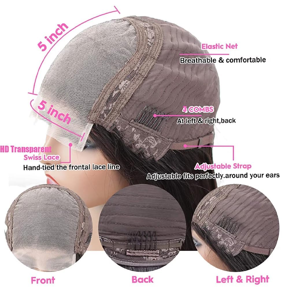 Encharm 5X5 HD Lace Super Double Drawn Straight Bob Wig Natural Color Human Hair
