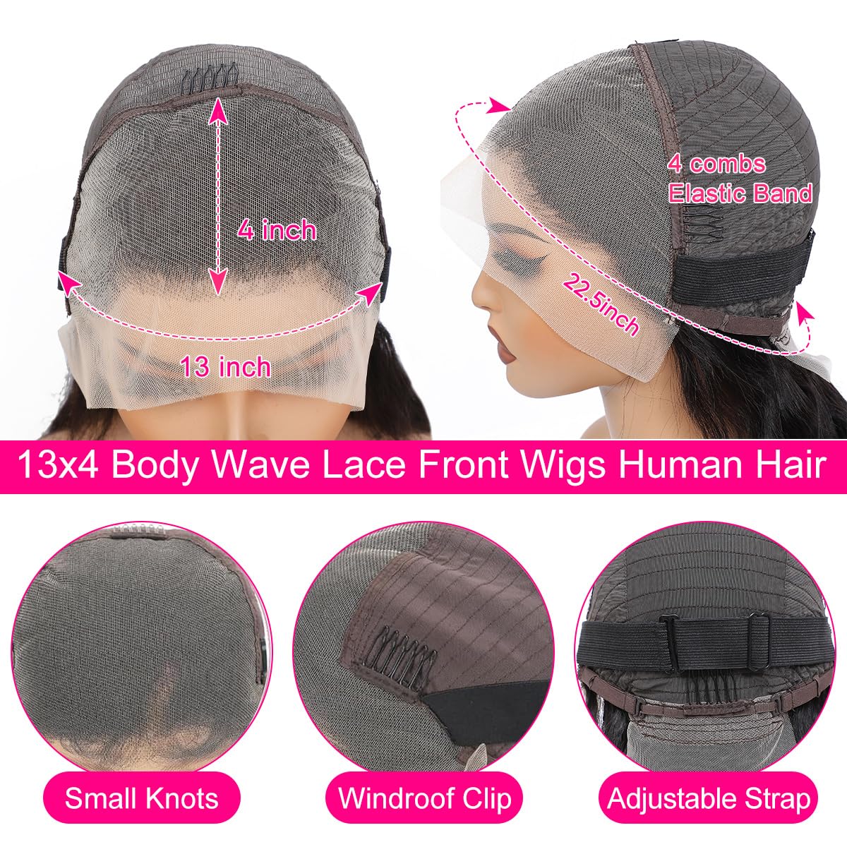 Encharm 13X4 Transparent Lace Natural Color Body Wave Wig 180% Density Human Hair