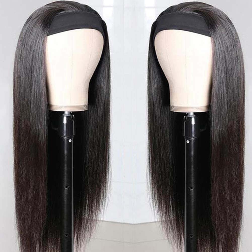 Encharm Headband Wig Straight Natural Color Human Hair Glueless None Lace Front Machine Made Wig
