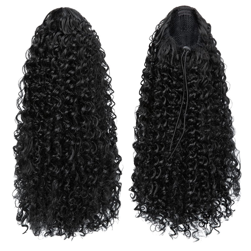 Encharm Ponytail Kinky Curly Human Hair Extension 1B# Natural Black Color