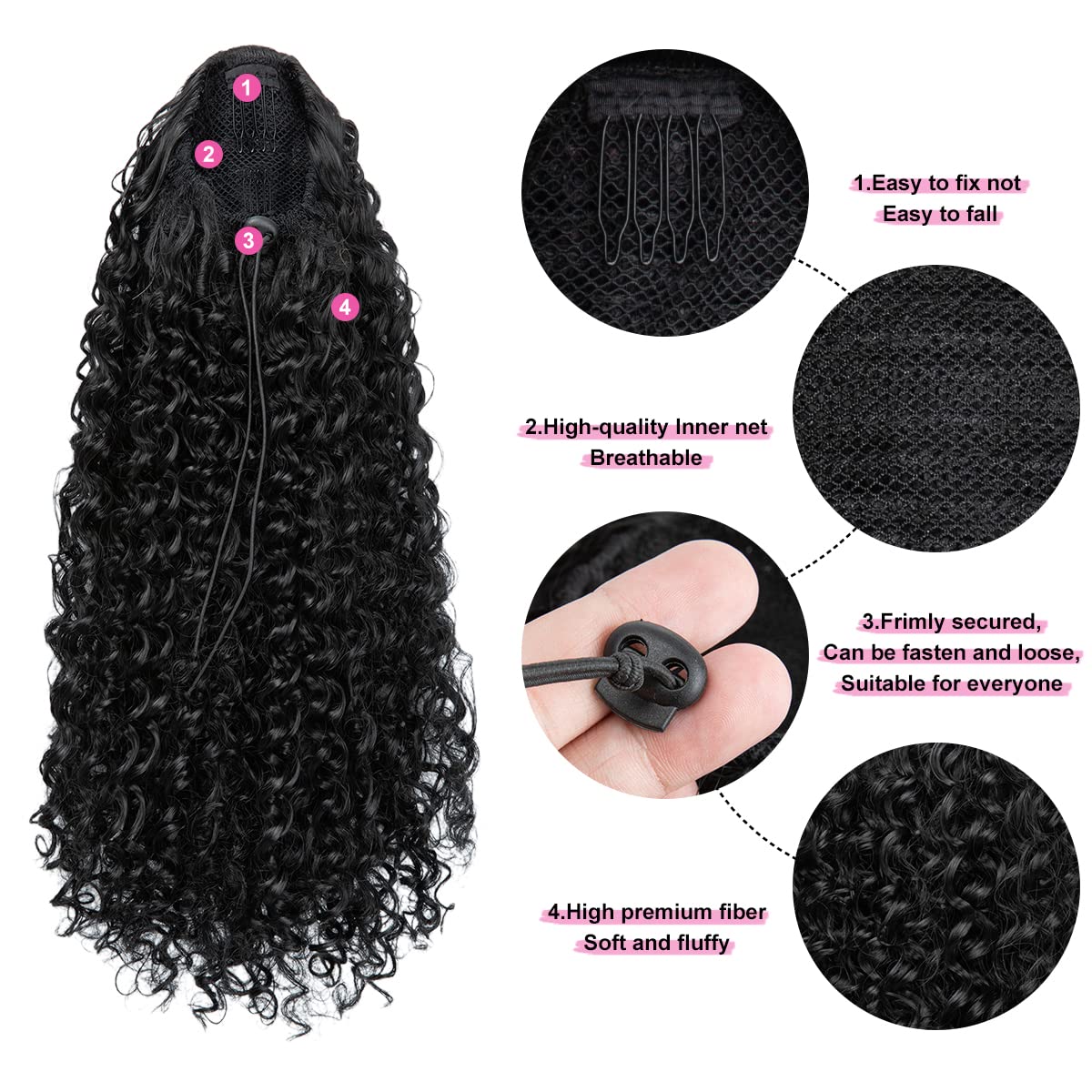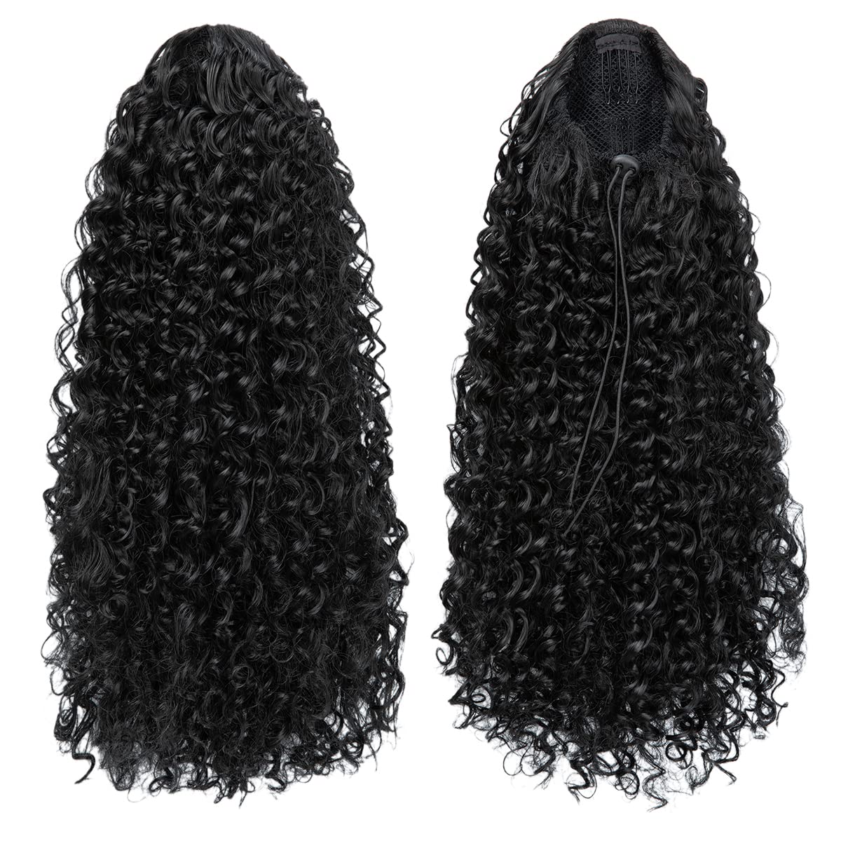 Encharm Ponytail Indian Curl Human Hair Extension 1B# Natural Black Color