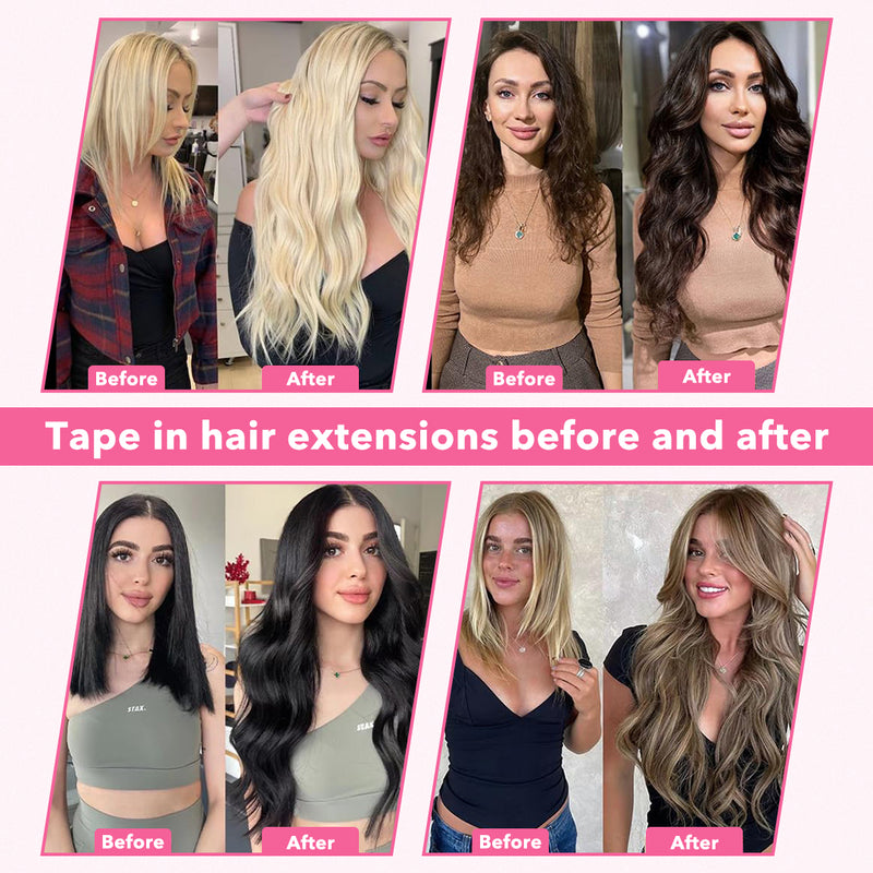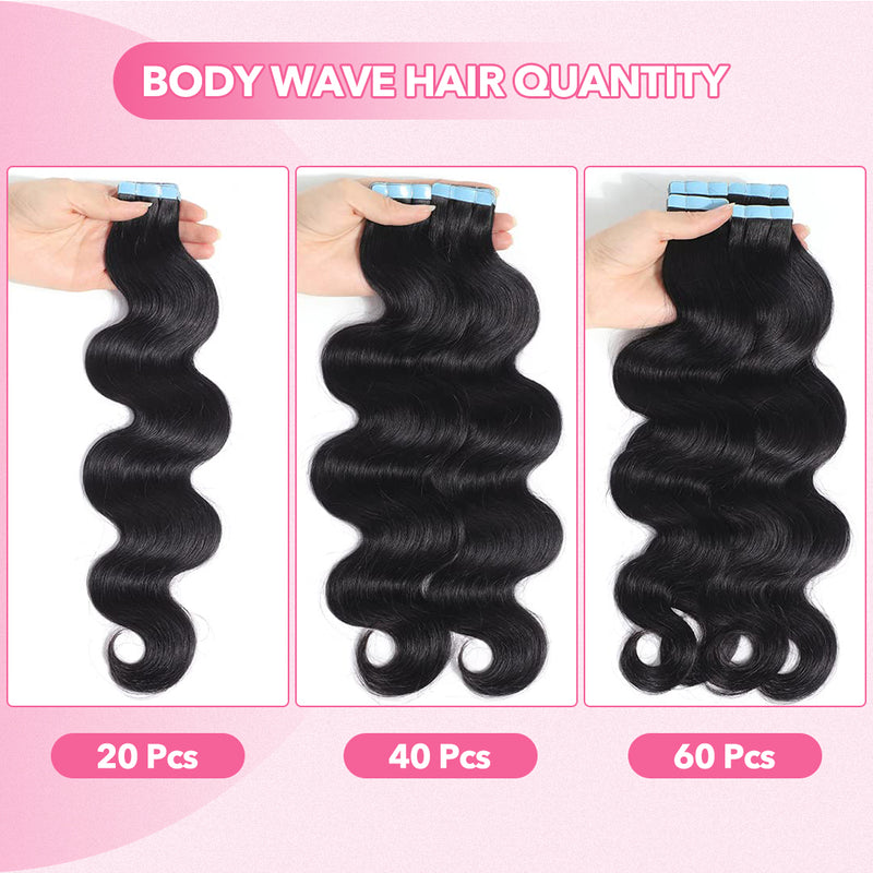 Encharm Tape Ins Human Hair Extensions 1B# Natural Color Body Wave