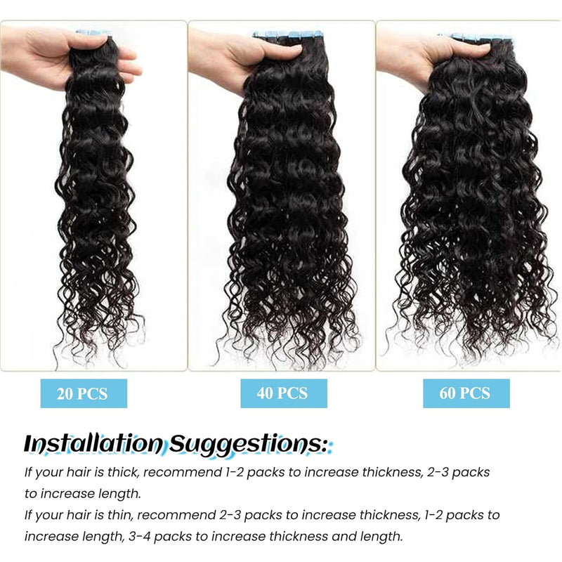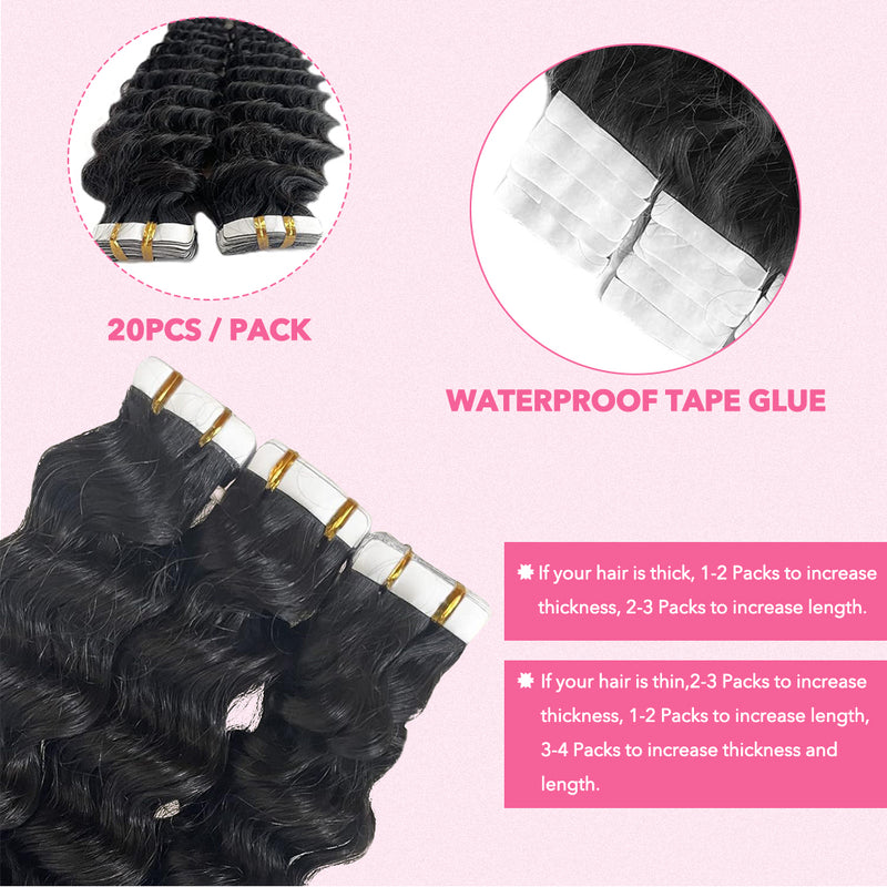 Encharm Tape Ins Human Hair Extensions 1B# Natural Color Deep Wave