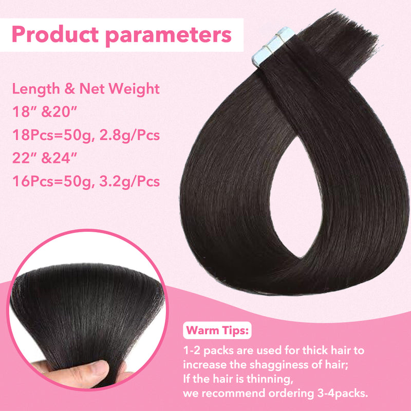 Encharm Tape Ins Human Hair Extensions 1B# Natural Color Straight