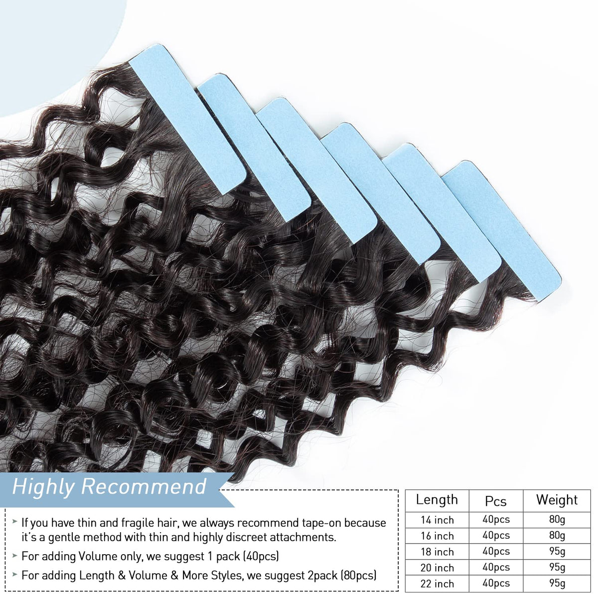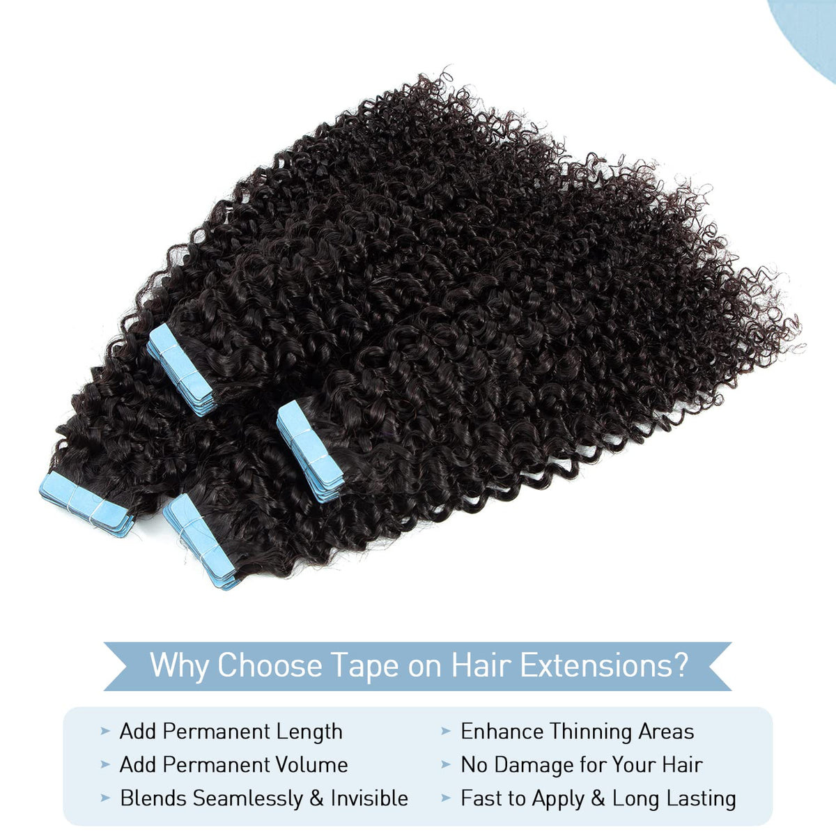 Encharm Tape Ins Kinky Curly Human Hair Extensions 1B# Natural Color