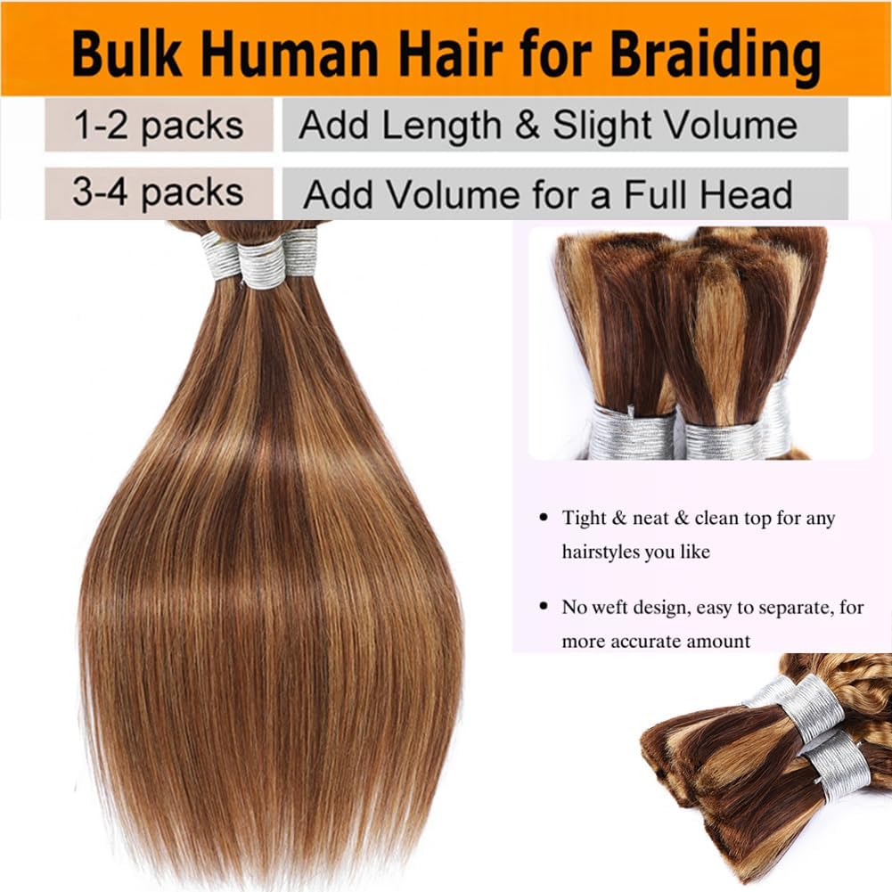 Encharm Straight P4/27# Human Hair Bulk Hair Extension For Boho